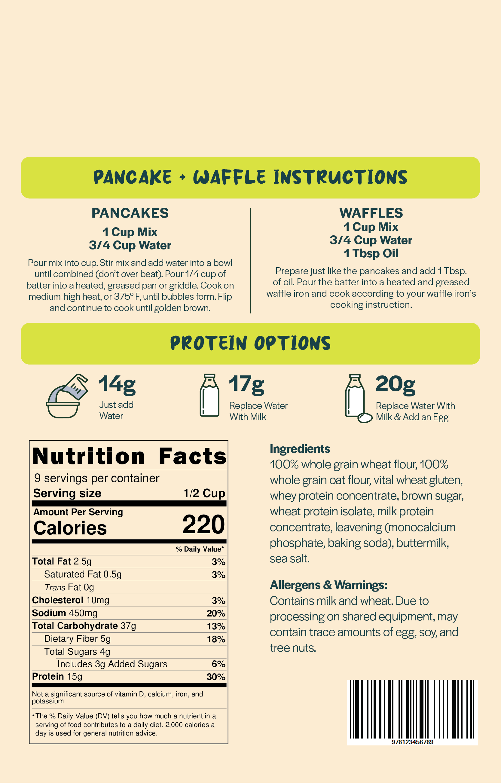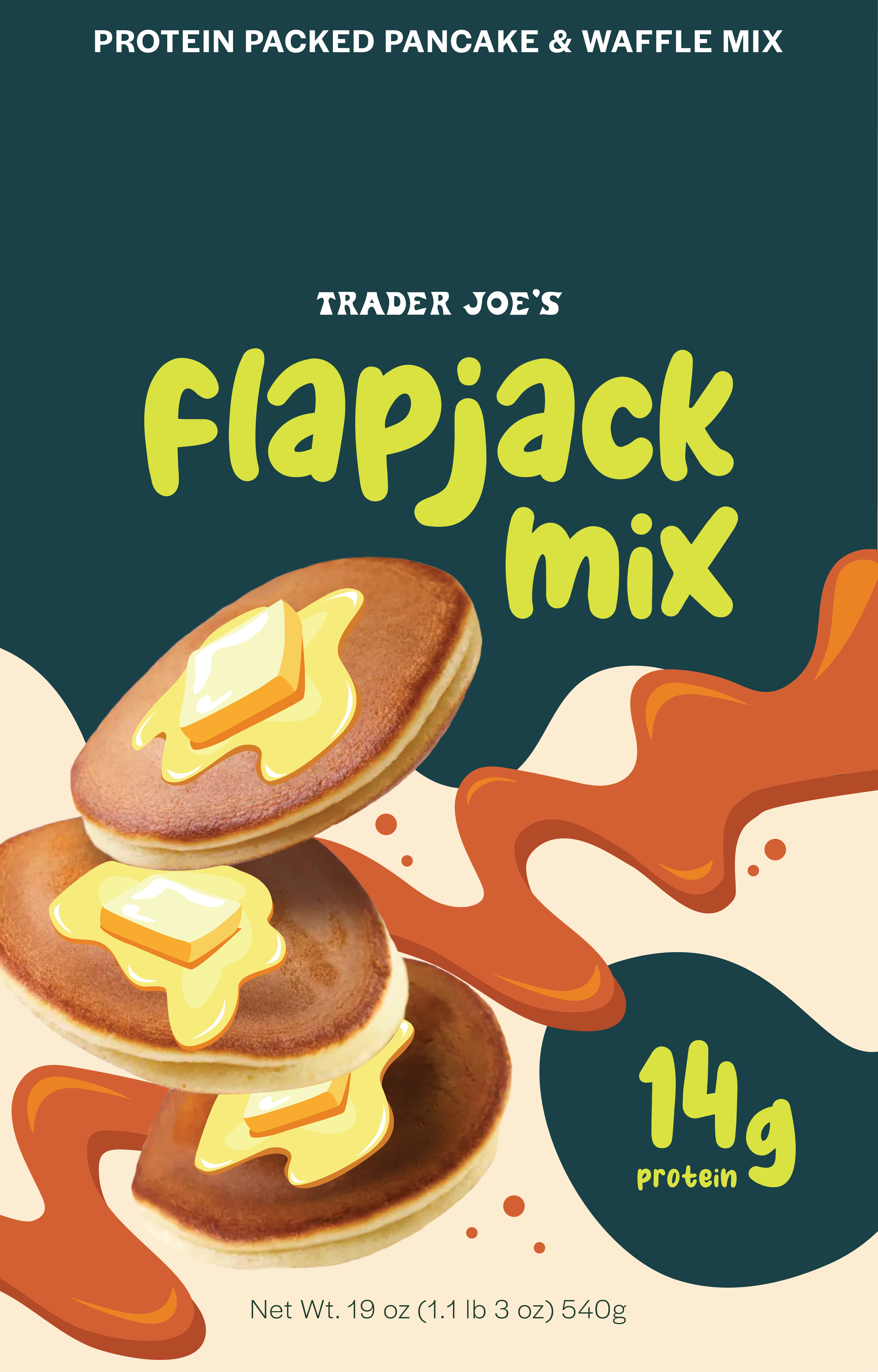 For Trader Joe’s, I conceptualized and designed the packaging for a protein-packed pancake & waffle mix. The company’s packaging often features light hearted, witty elements. This approach adds a playful feel to their brand - not to mention the use of bright, bold fonts and colors that are a hallmark of their packaging.